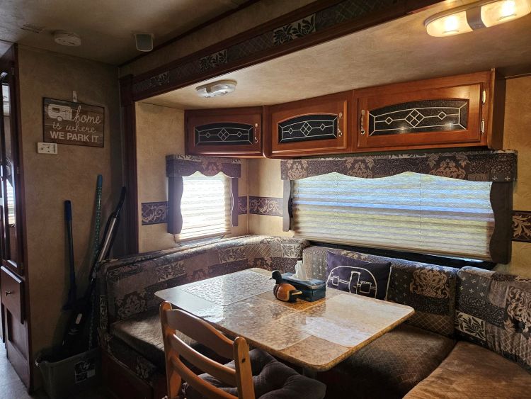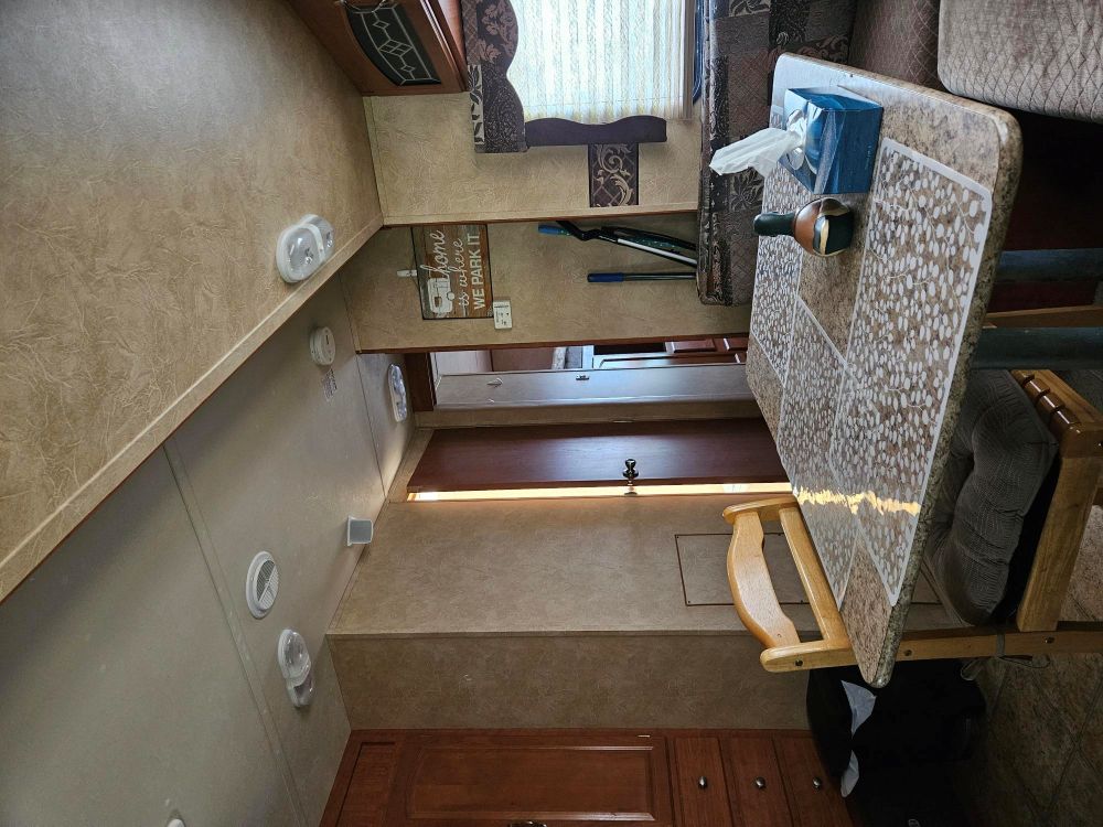 Includes all furniture, appliances, propane tank,TV, dishes, pots & pans, kitchen accessories & deck furniture